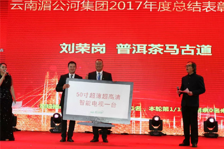接著,金洲集團(tuán)總裁周新華先生上臺致辭。周總裁對湄公河集團(tuán)2017年取得的成績表示肯定。周總裁表示,2017年是湄公河集團(tuán)精彩紛呈、開拓創(chuàng)新的一年。對過去一年,湄公河集團(tuán)在集團(tuán)總經(jīng)理鮑總、股份公司董事長李總等班子成員的帶領(lǐng)下,順利實(shí)現(xiàn)了包括茶馬古道旅游景區(qū)和普洱情境秀《茶馬古道》兩大項(xiàng)目對外營業(yè)等多項(xiàng)大事表示祝賀。周總裁表示,這都將為公司新一年的業(yè)務(wù)發(fā)展和銷售創(chuàng)新奠定良好基礎(chǔ),勉勵(lì)湄公河集團(tuán)全體干部員工2018年繼續(xù)努力,取得更好、更大的成績。