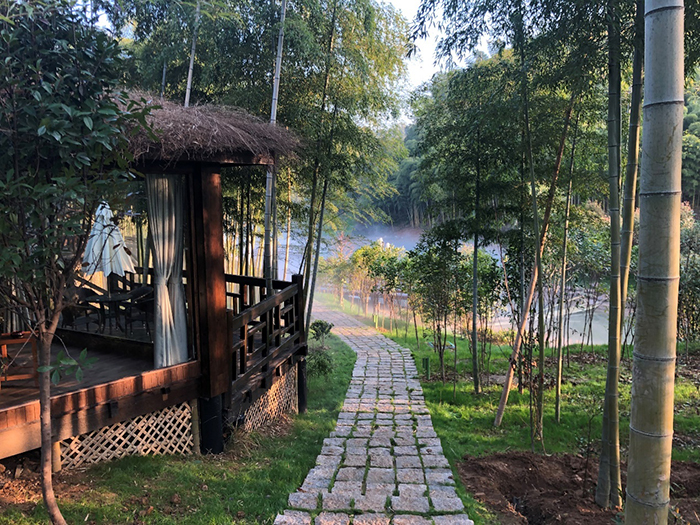 林立于竹海之中的獨棟精致木屋客房